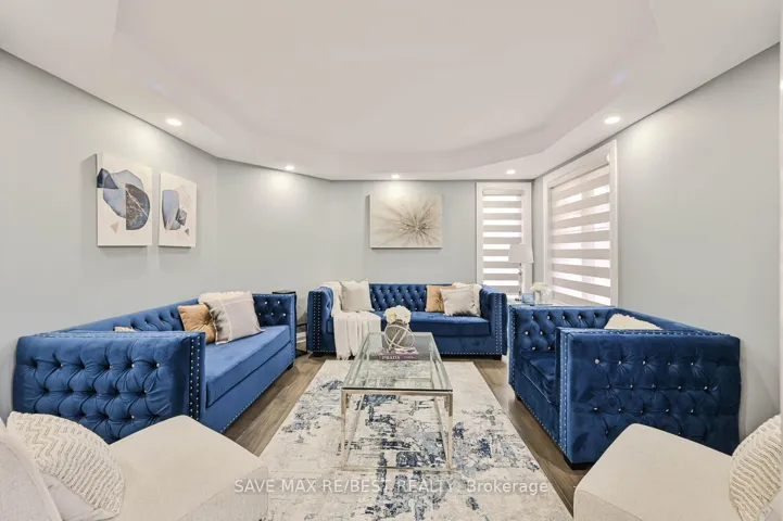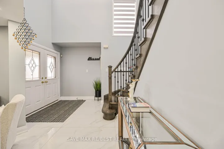 +"PublicRemarks": "Welcome to this impressive 4+1 bedroom, 3.5 bathroom home, offering aprx 2,400 sq. ft. of beautifully upgraded living space on a rare, premium corner lota true gem in this segment of homes within the community. This stunning property features a charming wrap-around covered front porch, an elegant double-door entry, and a grand open-to-above foyer accentuated by a striking spiral staircase. With oversized windows throughout, the home is filled with natural sunlight, creating a bright and airy atmosphere in every room. The main level showcases 24x48" porcelain tiles in the hallway, foyer, powder room, laundry, and kitchen areas, and is complemented by modern upgraded HW flooring on both the main and upper floors. The elegant layout includes architectural columns, a formal living room, a sep dining room, and a spacious family room all enhanced by neutral fresh paint & plentiful pot lights inside and out. The chef-inspired kitchen overlooks the family room and boasts SS appliances, a large modern centre island, a built-in wine rack and pantry, and a W/O to a large private deck, perfect for entertaining. The upper level features a spacious primary suite with double-door entry, a W/I closet, and a luxurious 4-piece ensuite with a soaker tub and separate shower. Three additional well-sized bedrooms share a bright and functional main bath. The professionally finished basement includes a cozy recreation room with a gas fireplace, an open-concept office/play area, a 3-piece bathroom, hobby room, storage areas, and a cantina. A separate legal side entrance provides the potential to convert the basement into a second dwelling unit, while still maintaining exclusive space for personal use. A beautifully landscaped lot with a brick walkway, no sidewalk, a fully fenced backyard, an oversized entertainers deck, and a storage shed. Conveniently located close to all major amenities. This sun-filled home is loaded with high-end upgrades a rare find where the features just keep going!"