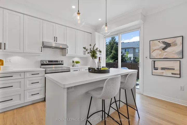 +"PublicRemarks": "Bright and sun-filled, this stunning south-facing home showcases a timeless natural wood and white colour palette throughout. Offering approximately 2,200 sq. ft. of thoughtfully designed open-concept living space, the functional 4-bedroom layout is enhanced by over $100,000 in premium upgrades.9-ft ceilings enhance the airy feel, complemented by high-quality waterproof laminate flooring on the main floor and second-floor hallway.Elegant natural wood staircase with white pickets.Gourmet kitchen with quartz countertops and an oversized waterfall island. All three bathrooms offer quartz counters and upgraded tile finishes. Pot lights and designer fixtures throughout.Upgraded double glass entry doors with smart keyless lock, EV charger installed, and full driveway access with no sidewalk interruption. Ideally located with convenient access to Highways 407 and 404, and just minutes to the GO Station, this exceptional home offers both luxury and convenience."