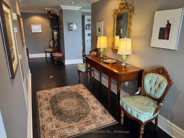 +"PublicRemarks": "Rare, unique huge 27th floor luxury condo. 3 bedrooms including large master bedroom with Him and Hers dressing rooms and ensuite double sink bathroom with large Jacuzzi bath tub. Front hall powder room and guest bathroom with shower. All have fans and heated floors. Separate dining room with built in Buffet cupboard. Large modern fully equipped kitchen with marble counter tops cooking island with fan and professional appliances. Large living room ( 25 x 27) with dry bar and marble encased electric fireplace and recessed lighting. Crown mouldings, 14" baseboards , laminated wood flooring. Floor to ceiling windows with blinds . In suite laundry , 2 parking spaces storage locker . Spectacular views and Subsets . 27 Amenities including pool , workout rooms sire restaurant am, spa Taxes $6,628/annum. Condo Fees which include all services ( electricity water heating etc) $3696/mo. *For Additional Property Details Click The Brochure Icon Below*"