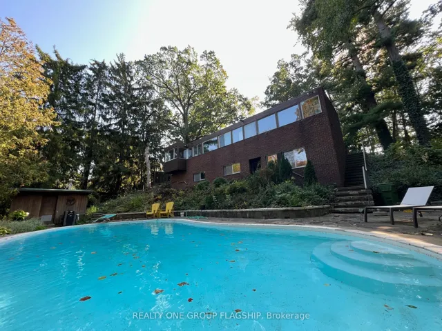 +"PublicRemarks": "This mid-century modern masterpiece boasts an abundance of character with its clerestory windows that flood the interior with natural light. Every glance reveals the lush greenery of the outdoors on this oversized lot and defines the epitome of tranquility at the Tree Haus! Truly Muskoka in the city, a haven for nature enthusiasts, complete with mature trees on a majestic ravine setting with kidney shaped concrete pool and creek that runs behind the property. With an emphasis on indoor-outdoor living, the home offers numerous private lounge areas where you can unwind in the serenity of your own oasis. Designed by architect W.J Mc Bain and custom built to the highest of standards in the 1962 with all copper flashing & window sills, exotic wood accents and spacious flexible spaces. The oversized great room is a showstopper and amazing for entertaining or cozying up by original cantilevered wood fireplace. The property features a separate coach house with income potential that could be used as an office, in-law/nanny suite, rental or air bnb. Plenty of room on lot to expand home if desired. Experience the magic of this unique property, where mid-century modern design meets nature's beauty. A tik tok home tour of the property in 2024 had over 1.4M views. This unicorn home awaits a new steward who can bring new life into it, the possibilites are endless!"