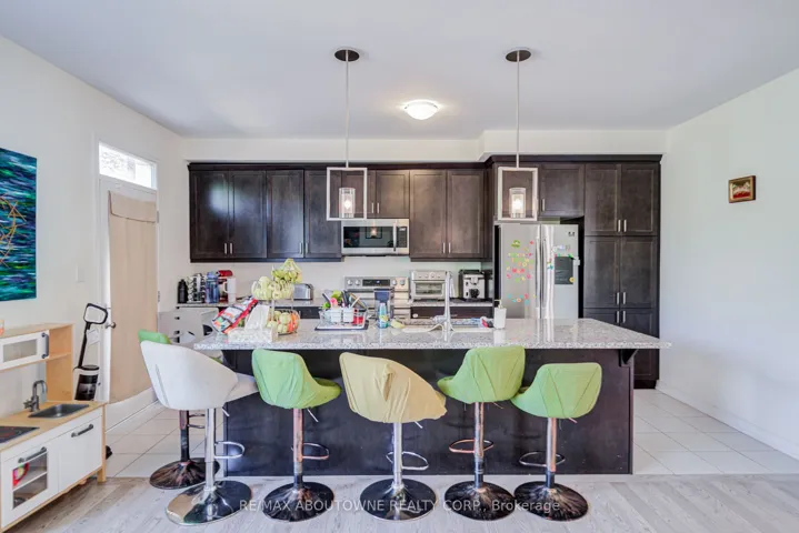 +"PublicRemarks": "Charming 5-Year-New Semi-Like End-Unit Townhome conveniently located near Sixth Line and Burnhamthorpe with easy access to Highways 403 and 407. This spacious 1,800 sq. ft. Mattamy home offers an open-concept layout with 9 ft ceilings, pot lights, and hardwood floors on the main level. The upgraded executive kitchen is a chefs dream, featuring granite countertops, a large island with pendant lighting, pantry, pot drawers, and top-of-the-line Samsung stainless steel appliances. Oversized windows fill every room with natural light, while the elegant wood staircase leads to a second floor with a convenient laundry room, a large primary bedroom with walk-in closet and 4-piece ensuite, and two generously sized bedrooms with double closets. Premium fixtures, custom window coverings, and a bright basement with lookout windows complete this modern and inviting home."
