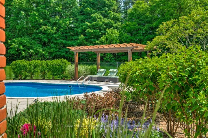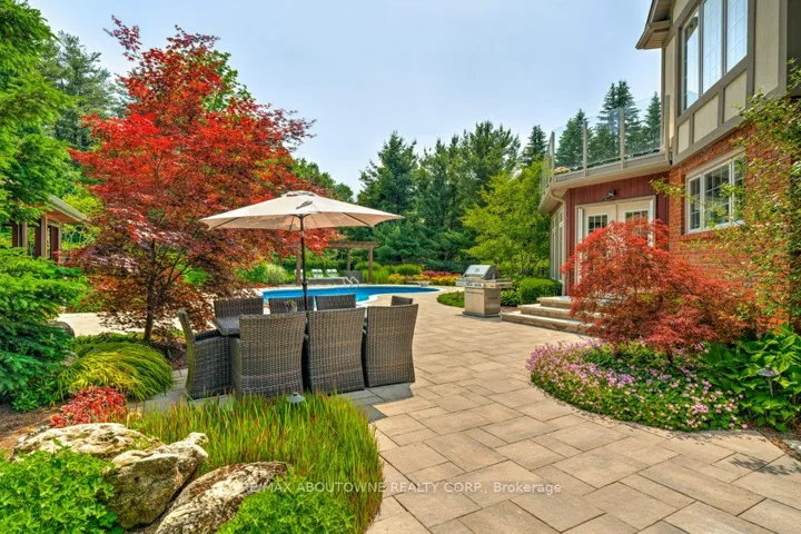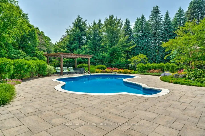 +"PublicRemarks": "Welcome to 6365 Breckenridge Place your dream country retreat nestled on 2.5 picturesque acres in prestigious Kilbride. Premium location at the end of a quiet court backing on a peaceful ravine, part of a path free portion of the Bruce Trail. This serene and beautifully landscaped property offers a tranquil lifestyle with sweeping lawns, manicured gardens, an in-ground heated pool and a charming screened-in gazebo complete with a gas fireplace, TV and ceiling fan ideal for year-round outdoor entertaining. The custom pergola offers the perfect place to lounge next to the pool. Built by well known Brant haven Homes, this truly one-of-a-kind residence boasts approximately3,400 sq ft of thoughtfully designed living space with Craftsman-inspired details. Highlights on the main floor include a generous kitchen with solid maple cabinetry, an expansive island, stunning Cambria quartz countertops and heated travertine floors. The kitchen opens to a cozy solarium that steps out into the idyllic backyard and a family room that features a unique slate, copper, and maple fireplace. A custom library with wall-to-wall built-ins provides an ideal home office or reading retreat, and elegant formal living and dining rooms are perfect for entertaining. Upstairs are four well-proportioned bedrooms, including one with French doors that open to a second-floor deck which overlooks the pool and expansive green space. The main bedroom features his and hers walk-in closets and a spa-like ensuite. Additional highlights include a large three-car garage, 10,000-gallon cistern, an in-ground sprinkler system, an extra-long driveway, and a huge unfinished basement offering tons of storage and endless possibilities. All this, just minutes from scenic hiking trails, top-rated golf courses, and the natural beauty of the surrounding countryside. Dont miss your opportunity to own a slice of peaceful paradise!"