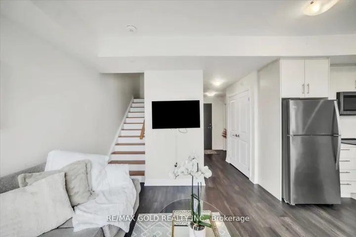 +"PublicRemarks": "Stunning 2-Bedroom, 3 full bathroom, 2-Storey Condo Townhouse with ensuite Laundry in a Family-Friendly Community! Features include smooth 9 ft ceilings, floor-to-ceiling windows with sun-filled southeast exposure, and walk-out to an oversized 13 X5.5PATIO. Open-concept kitchen with quartz countertops, stainless steel appliances, double undermount sink, and ceramic tile backsplash. Spacious primary bedroom with 4-pc spa-like ensuite featuring a stand-up glass shower and a large walk-in closet. Ensuite laundry, oversized windows in both bedrooms, and a locker conveniently located on the same level. Located in a well-maintained, family-oriented complex with an exclusive playground. Steps to shopping, schools, transit, places of worship, and nature trails. MINUTES TO HWY 427 Connecting to 407 and 401. Ready to move in. Only 1 year new with beautiful brick and stone exterior and elegant modern design."