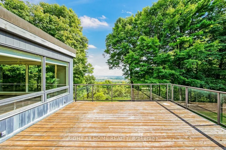 +"PublicRemarks": "Stunning Frank Lloyd Wright - Inspired Estate with Sweeping Escarpment Views! Perched on the crest of the Niagara Escarpment, this remarkable 3.7 acre estate offers rare privacy, timeless, design and a seamless connection to nature - all just minutes from local conveniences. Blending classic craftsmanship with modern sophistication, the home showcases rich hardwood and natural stone flooring, custom millwork, soaring coffered ceilings and refined crown mouldings. Expansive floor-to-ceilings windows capture breathtaking, unobstructed views, filling every room with natural light. The open- concept design is ideal for both intimate living and grand entertaining, with flowing sightlines from the Great room to the formal dining area and chef's kitchen. Multiple glass-railed terraces extend the living space outdoor, where the escarpment's four-season beauty provides an ever-changing backdrop. Each room has been thoughtfully curated to evoke calm and harmony, offering a true retreat from the demands of daily life. For the equestrian enthusiasts, the property features a manicured paddock with oak fencing and a custom built horse shelter. Outdoor lovers will enjoy direct access to nearby Rattlesnake Point Conservation Area perfect for hiking and exploring nature. This estate is more than a residence - it is a lifestyle defined by beauty, balance and refined country living! ATTENTION BUILDERS: Property has conditional approval for development from the Niagara Escarpment Commission."