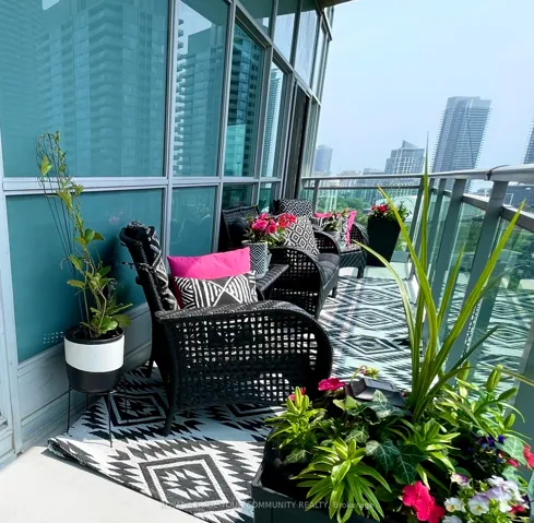 +"PublicRemarks": "Enjoy Resort-Style living in the City; elegant and impressive 2 bedroom, 2 bathroom corner suite featuring lofty 10 ft ceilings and 975 square feet of beautifully designed space . This Condo offers an expansive open-concept kitchen, living and dining area which includes a large mirrored credenza - perfect for entertaining; walk-out to oversized (199 square ft) balcony and take in the fabulous south-east panoramic cityscape and Lake Ontario view - luxury living on Toronto's vibrant waterfront! The primary bedroom, which can accommodate a king size bed, has a terrific walk-in closet as well as a large lovely custom mirrored closet! Both bedrooms have walkouts to the balcony, each showcasing stunning unobstructed lake views; 2 Large Lockers included with this unit; Residents enjoy access to World-Class Amenities including a rare find outdoor pool, indoor pool, BBQ areas, 2 gyms with one located on the roof-top; yoga/fitness studio offering free classes; 3 hot tubs, 2 saunas, Badminton/Volley Ball Court; theatre room; billiards, library, 2 lounge/party rooms with amazing lake & city views - all this just steps from shops, lakefront, parks and dining. For boaters, conveniently located near Etobicoke Yacht Club and Marinas, and just a short walk from Mimico GO Station - an easy and efficient commute to work. The new adjacent Grand Avenue Park includes a free running/walking track, soccer field, splash pad, large dog park, rental bikes, and a new playground; very close to Gardiner Expressway, QEW, Lakeshore Blvd., Sherway Gardens Shopping Centre and downtown Toronto! Unit includes 2 large, side by side lockers, a parking spot near the elevator and 2 large mirrored custom built-in storage units; 24 Hour Concierge & Security - Pet Friendly Building!"