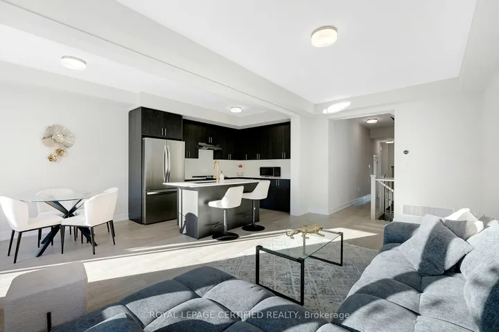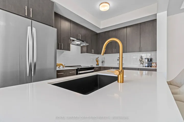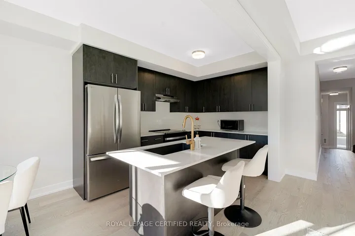 +"PublicRemarks": "Modern 3 storey end row unit, 4 bedroom, 2 full ensuite bathrooms, total 3.5 bathrooms, open kitchen with quartz island to accommodate breakfast eating counter space, pot lights in family room, trendy glass door shower stall in master ensuite and MF bedroom with ensuite bath, luxury vinyl tiles and laminating flooring through out, only carpeting on the staircases, quartz countertops in Kitchen and all full bathrooms, 2004 sq ft of luxury living space in 3 level, main floor laundry, rear attached double garage and huge 2nd level balcony off eating area.5 appliances. Ready for you to move in. All offer to lease must accompany with full credit report - Landlord only consider full credit and tenant report obtained from SINGLEKEY.COM and select the option to share to listing agent, completed rental application, proof of employment, copy of latest paystub, deposit cheque in bank draft or certified cheque. No smoking and no pet. Tenant will provide tenant liability insurance, pays gas, hydro, water and on demand hot water heater rental, tenant responsible for lawn mow and snow removal."
