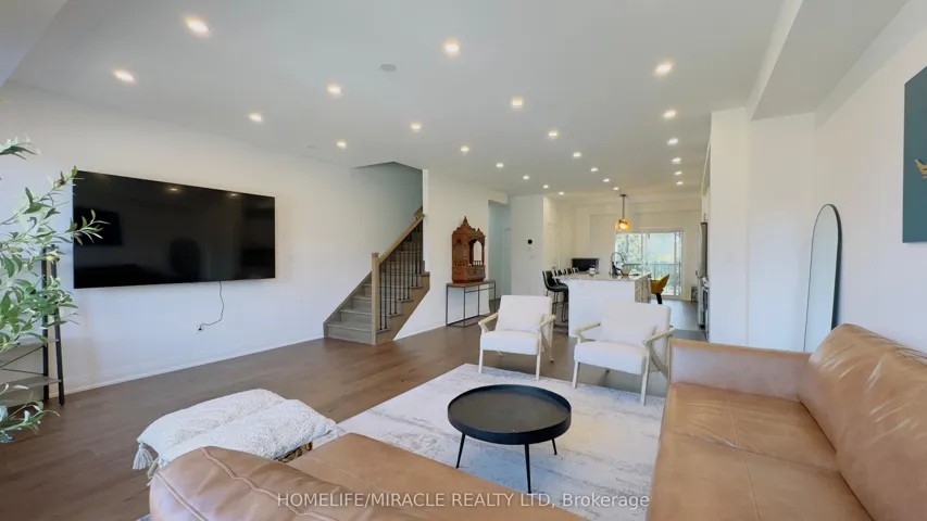 +"PublicRemarks": "Discover your dream home in the prestigious Trafalgar Square development of Georgetown! This nearly new (1.5 years old) luxury freehold townhome blends contemporary sophistication with practical design, offering the best in comfort & style offering nearly 2000sqft. Ideally located in a highly desirable neighbourhood steps from the golf course, city hall, and backing onto peaceful green space, this home promises both convenience and tranquillity. The "Wildwood" model is the largest interior unit available, featuring an open-concept layout that's bathed in natural light. Enjoy high ceilings, large windows, & an effortless flow from the spacious living area to the gourmet kitchen & dining area-perfect for both everyday living and entertaining. With over $50,000 in premium upgrades, this home includes 3 spacious bedrms, 3 elegant bathrms, and a walk-out den/family rm on the main level that leads to your private backyard. Whether you're unwinding or hosting guests, this home has it all. Don't miss out-schedule your private tour today! Upgrades include: 1. Large Plank Hardwood Flooring throughout the main floor 2. Large upgraded natural stone Island with electrical outlets on both sides & a Large one-compartment stainless steel sink with a premium chrome faucet 3. Premium soft closing hydraulic Kitchen Cabinets with large 4" chrome handles 4. Stone countertops in washrooms with premium Moen Faucets 5. Pot lights (5CT conditions) 2700k to 6000k colour-changing Pot lights as per your mood & weather 6. All Wi-Fi-enabled latest Smart Samsung Appliances for seamless connectivity through smartphone 7. Smart Ecobee Thermostats with Sensors. 8. Brand New Water Softener 9. Hardwired front and back cameras from Defender Guard Security, in addition to the Ecobee Front Doorbell Camera. 10. 4" Large Blackout Zebra Blinds for added privacy throughout 11. Gas hookup for BBQ on the deck 12. Occupancy-activated front passage lights 13. Full motion (Swivel/Tilt) TV wall mount up to 85" TV"