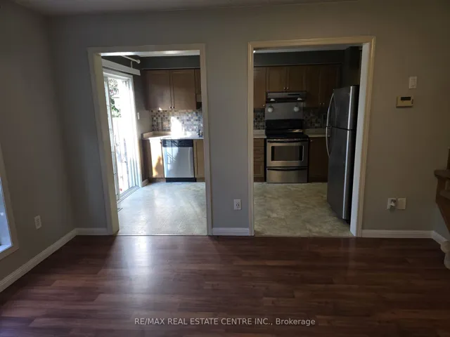+"PublicRemarks": "Beautiful 3 Beds, 3 Baths Town house with finished basement and 3 Parking spaces. Backs on to a GREEN SPACE. Lovely and peaceful landscaped fully fenced Private backyard is one of the great features of this house. No Houses in the back. Located in the heart of Milton (Thompson and Clark). Steps to Parks, Public Transit and schools. Milton Go is merely 3 Km away. Heartbeat to new Freshco, Metro, Shoppers Drug Mart, and Many New Restaurants. Minutes to Highway 401. Freshly Painted. Entrance from Garage to home. . The basement has a large Rec room and 3 pc bath and storage room. Master Bedroom has walk in closet and semi-ensuite 4 Pc. bath. Front Entrance has a glass enclosed porch. Comes with One Garage and 2 car park extended driveway with NO SIDEWALK. For List of schools and parks, please see the attached schedule. A great Neighborhood for raising your children. The previous tenants stayed for over 8 years. Looking for A++ tenants only. Available Immediately."