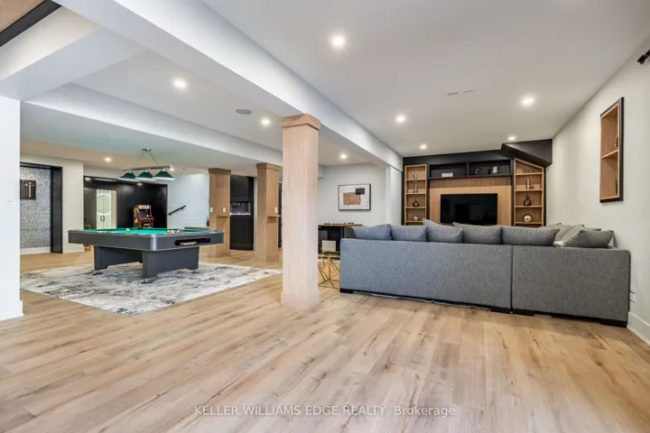 +"PublicRemarks": "A rare opportunity to own a truly exceptional family estate on 5.76 acres of private, tree-lined grounds. Thoughtfully designed and custom-built by its owners, this timeless, elevated, and refined residence blends high-end finishes, modern luxury, and everyday comfort, offering an executive lifestyle in a prestigious, sought-after location. Every detail has been carefully curated to create an unparalleled family sanctuary. Step inside to a dramatic 22-foot foyer with a striking floating staircase and expansive windows that flood the home with natural light while framing breathtaking views of the surrounding landscape. Every space has been designed for connection, entertaining, and refined living, providing both grandeur and warmth. At the heart of the home is an extraordinary chef's kitchen featuring dual islands with seating for 14, high-end appliances, and seamless flow into the sunroom and outdoor kitchen, perfect for hosting and family gatherings. The estate offers an impressive suite of lifestyle amenities, including a private spa with a 10-person jacuzzi, steam room, and sauna, as well as a home theatre, gym, games area, and full bar. A private elevator adds convenience, while a three-bedroom guest suite above the garage provides flexibility for extended family, in-laws, or a live-in nanny. Outdoors, enjoy a heated saltwater pool, tennis and basketball courts, two fire pits, walking trails, and a tranquil private pond. As an added bonus, an exclusive Golf Links course steps away. Designed with sustainability in mind, the property features solar and geothermal systems, full smart-home integration, and dual septic systems, all within a private setting. This is a rare and prestigious offering-an exceptional estate designed for luxury living, privacy, and lasting legacy, in a highly sought-after location."