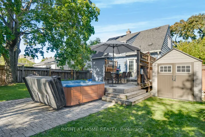 +"PublicRemarks": "Welcome to this beautifully maintained 3-bedroom, 2.5-bath carpet-free home ideally located in one of Burlington's most desirable downtown neighbourhoods. Just steps from the lake, Spencer Smith Park, and a vibrant array of restaurants, cafes, and shops, this property offers the perfect blend of charm, character, and convenience. Step onto the spacious covered front porch and into a warm, open-concept main floor that's ideal for both relaxing and entertaining. The updated kitchen features stainless steel appliances, a gas stove, and a large peninsula with seating. The exposed brick chimney, original hardwood floors, California shutters, and gas fireplace in the living room create a cozy yet stylish atmosphere. The generous dining area comfortably fits a large table and opens via double doors to the backyard deck, perfect for indoor/outdoor living. Upstairs, you'll find two bright bedrooms with built-in cabinets and a renovated 4-piece bath. The finished basement includes a spacious primary bedroom, a comfortable rec room/living area, and a bathroom with a walk-in shower - ideal for guests or as a private retreat. The private backyard is your personal oasis, complete with mature trees, a wooden deck, a hot tub, and a new shed for extra storage. Recent upgrades include: Furnace (Dec 2020); A/C (2021); Exterior paint (2021); Dishwasher (2022); Powder room (2023); Shed (2023); Hot tub cover (2025). Don't miss this rare opportunity to live in a charming, character-filled home in downtown Burlington - where you're never far from the lake, green space, and city amenities. Book your private showing today!"
