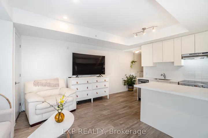 +"PublicRemarks": "Welcome to 408 Browns Line, an exceptional one-bedroom, one-bath residence in a boutique building that offers contemporary elegance in the heart of South Etobicoke. With approximately 701 square feet of thoughtfully designed living space, this one-year-old suite is the perfect blend of style, comfort, and convenience.From the moment you enter, the home impresses with its unique, oversized entry hallway a rare feature in condo living offering abundant storage and a sense of openness. The living and dining areas are adorned with sleek laminate flooring, flowing seamlessly to a modern kitchen with stainless steel appliances, quartz countertops, breakfast bar, and a versatile movable island. A designer backsplash adds a touch of sophistication, while the upgraded bathroom continues the quartz finishes for a consistent, elevated feel.Step onto your private balcony and enjoy beautiful views of the city, including the iconic CN Tower. Perfect for morning coffee or evening relaxation, this outdoor space enhances the lifestyle appeal of the home.Residents will appreciate the unbeatable location, just steps to TTC, GO Station, community centers, and the vibrant amenities of South Etobicoke. Excellent schools, parks, and recreation are within walking distance, including Sir Adam Beck Park and Alderwood Centre. Whether commuting downtown or enjoying local conveniences, this property balances urban accessibility with neighborhood charm.Ideal for professionals, downsizers, or investors, this boutique suite delivers modern finishes, panoramic views, and a strategic location in one of Torontos most connected neighborhoods."