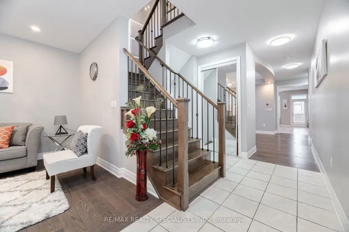 +"PublicRemarks": "Gorgeous Mattamy build (French chateau stone and stucco elevation) detached 43 wide lot, just7 years young, 5 bedroom, 5 bathroom, Total 7 cars parking spots including 2 cars garage parking with no side walk. With separate living, family, dinning, breakfast area and an office/bedroom on the main floor. Mattamy's upgraded kitchen with granite counter tops, all stainless steel appliances including cooktop stove, wall mount oven and microwave with a Built-in pantry and California shutters on Main Floor. Upstairs 5 spacious bedroom with 3 full bathrooms, and Laundry room. Lots of natural light. Pot lights inside and all around outside of the property. The expansive primary suite includes two walk-in closets, a spacious ensuite with soaker tub and standing shower. The finished basement with separate side entrance offers a large rec room ideal for movie nights or a home gym or party area or perfect for extended family, adult children. Outdoors, the low-maintenance backyard is well conditioned for organic cultivation."