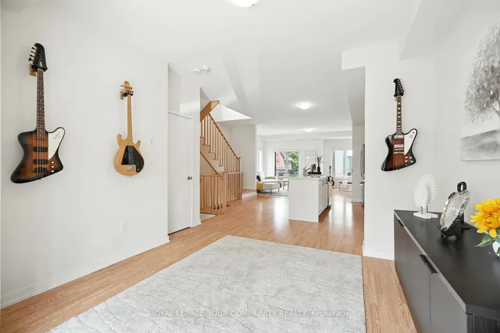 +"PublicRemarks": "Rarely offered, this 3-bedroom, 3-bathroom freehold townhome offers nearly 2,000 sq. ft. of contemporary living space with parking. Step into an elegant home featuring 9 ft ceilings in the living room, hardwood floors, and a gas fireplace. The modern S/S appliances, granite countertops, designer cabinetry, and a custom backsplash. The primary retreat impresses with a private balcony, custom walk-in closet, and a spa-like 5-piece ensuite with double sinks, glass shower, and soaker tub. Additional highlights include a second-floor laundry with utility sink, granite vanities, and a bright south-facing terrace perfect for relaxation. This desirable unit offers direct access to the community playground and is ideally located near subway, plazas, banks, restaurants, top-rated schools, and major highways."