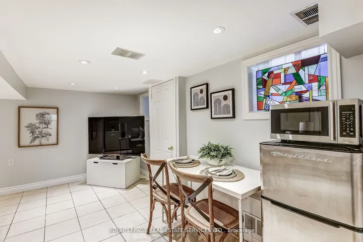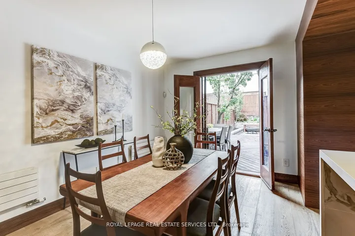 +"PublicRemarks": "Nestled on a coveted street in Swansea/Bloor West Village, this beautifully renovated detached home blends vibrant city living with a welcoming, family-friendly vibe. Inside, chic contemporary finishes meet timeless vintage charm. Light oak floors flow throughout the main and upper levels, creating an elegant, cohesive feel. The main floor is perfect for effortless entertaining, featuring a cozy living room with gas fireplace that invites intimate conversations and an open dining area overlooking a gourmet chef's kitchen with Caesarstone counters, spacious island, and premium appliances that make hosting a joy - whether prepping a meal or sharing wine & appetizers with friends. French doors open to a custom deck ideal for "al fresco" dining under the stars. Four separate entrances (front, side, rear, and French doors) offer convenience and flow.The private backyard oasis is perfect for morning coffee or evening gatherings. A rare bonus: the detached garage has been transformed into a stylish studio/garage house ideal for yoga, fitness, or creative pursuits. Upstairs, three bedrooms feature new closets and a renovated bathroom with glass shower, marble finishes, Caesarstone counters, heated floors, and towel warmer. The principal bedroom includes extra closet space and vintage leaded glass windows.The finished basement offers a spa-like bathroom with heated floors, ceramic tile, jacuzzi tub, stand-alone glass shower, Caesarstone counters, teak accents, and a built-in Murphy bed for guests. Steps from Jane subway station, this home offers effortless access to High Park, local cafes, bakeries, fruit stands, boutiques, and shops like Book City. Enjoy dining at fab restaurants, seasonal festivals, a vibrant farmers market, and the natural beauty of lake, river, and pond. Swansea Town Hall offers enriching programs for all ages. A perfect fit for professionals, families, or couples seeking style, comfort, and convenience in one of Torontos most treasured enclaves."