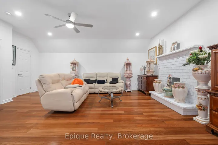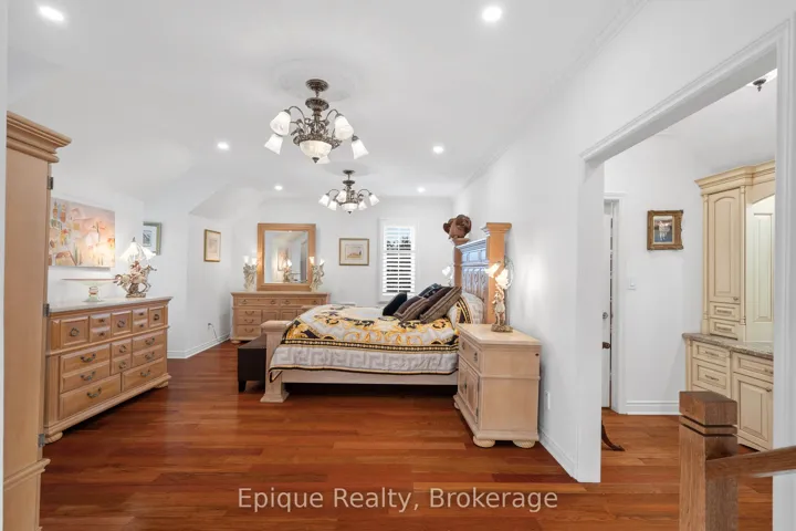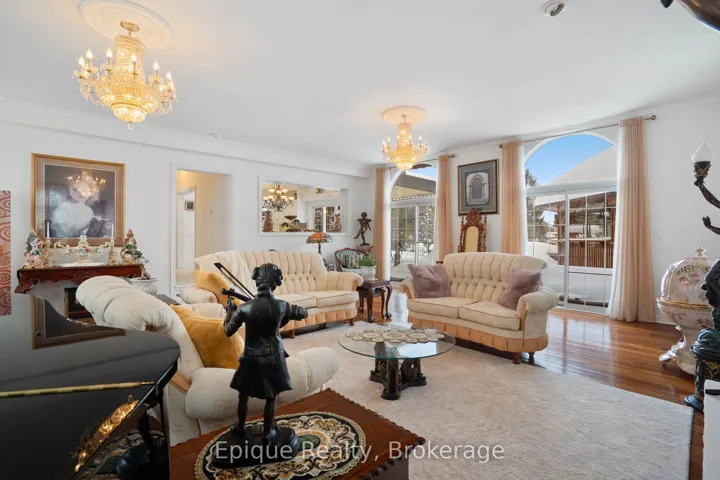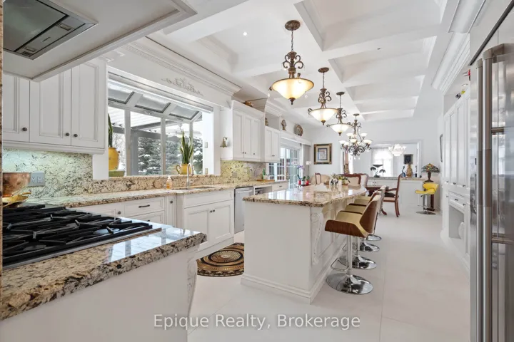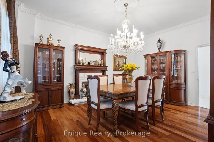 +"PublicRemarks": "EXPERIENCE UNMATCHED LUXURY IN CAMPBELLVILLE. Nestled on a lush and private 1.13 acres, this imposing 7,200 sq. ft. estate is a masterpiece of design and craftsmanship. Exotic Brazilian cherry floors, Swarovski crystal chandeliers, and five fireplaces create an ambiance of timeless elegance.The formal dining room stuns with a majestic fireplace and chandelier, while the main-floor office connects seamlessly to the conservatory, perfect for entertaining with a baby grand piano. The gourmet kitchen boasts Jenn-Air & Bosch appliances, custom cabinetry, and quad French doors leading to an expansive deck and remote-controlled screened sunroom.The primary suite wing is a private retreat with a sitting area, gas fireplace, spa-inspired ensuite with double vanities, an oversized glass shower, a deep soaker tub, and extensive closet space. Three additional bedrooms share an opulent oversized bath, ensuring comfort and elegance.The professionally finished lower level includes a spa-inspired 3-piece bath with a steam shower. Outdoors, enjoy a 20 x 40 heated saltwater pool, pool house changeroom, and a cedar cabana bar with power and water.For the automobile enthusiast, the 4-car garage and parking for 20+ vehicles provide ample space. Just minutes from the 401, this estate offers unparalleled luxury, privacy, and accessibility.A rare opportunity to own a true luxury retreat. Schedule your private showing today."