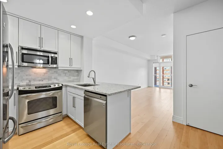 +"PublicRemarks": "Experience the best of downtown Burlington living in this stylish one bedroom, one bathroom condo with a balcony. This suite combines comfort, convenience, and luxury with access to incredible amenities. From the moment you step inside, you'll be impressed by the modern finishes, floor to ceiling windows and thoughtful design throughout. The chef-inspired kitchen is a highlight, featuring granite countertops, marble tile backsplash, sleek cabinetry, stainless steel appliances, and a breakfast bar with seating for three perfect for casual dining or entertaining. Beautiful light hardwood flooring flows seamlessly through the open-concept living/dining area and into the spacious bedroom. The bedroom offers floor-to-ceiling windows and a walk-in closet. The elegant 4-piece bathroom is both relaxing and refined. The balcony extending from the living area provides an ideal vantage point to enjoy sweeping views of the escarpment and a touch of the lake beyond. In-suite laundry adds everyday convenience, while the building itself provides a long list of upscale luxurious amenities. Begin your morning with a swim in the indoor pool, unwind in the yoga studio or sauna, or find peace in the zen garden. Host gatherings at the outdoor BBQ area, challenge friends in the billiards room, or keep active in the fully equipped fitness centre. With 24/7 concierge service, your needs are always met. All of this is located just steps from Burlington's vibrant downtown core, where you'll find boutique shopping, diverse dining, and a lively waterfront community. Don't miss your chance to call this stunning condo home and embrace the ultimate urban lifestyle."