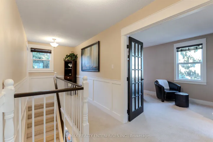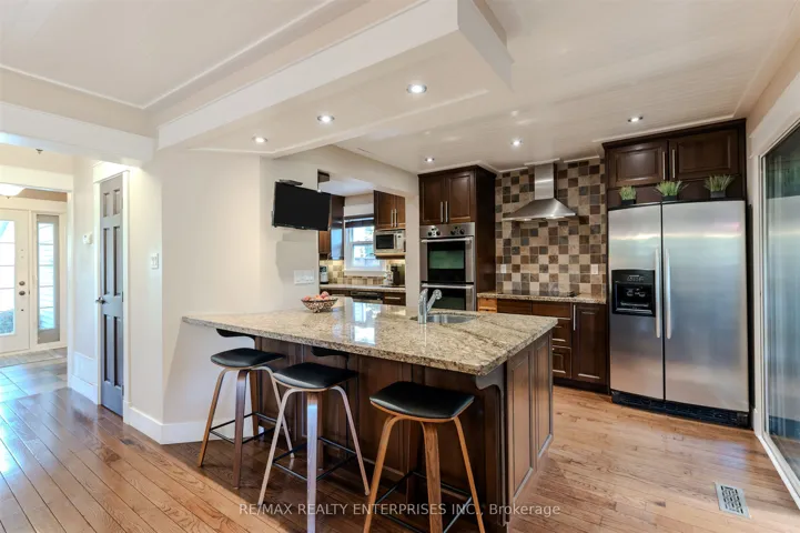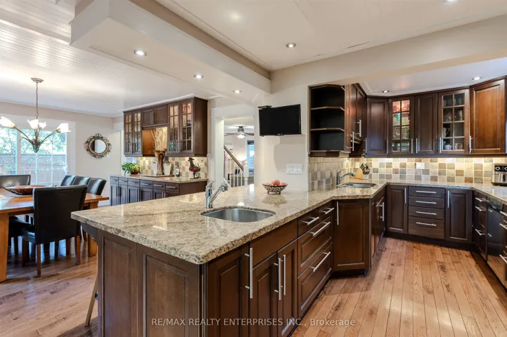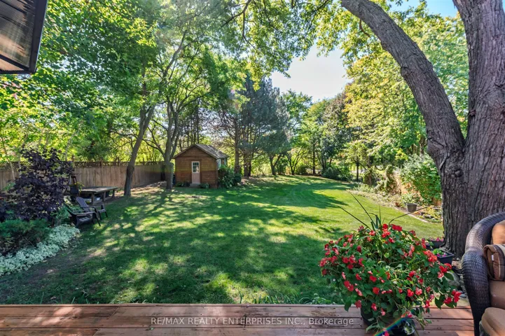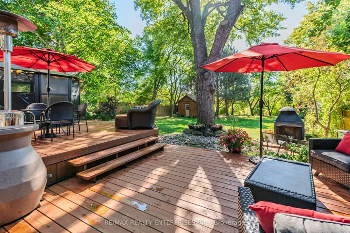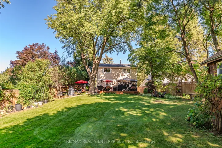 +"PublicRemarks": "Introducing 18 Blueridge Square, a meticulously renovated three-bedroom residence on an oversized, nearly half-acre private lot backing onto the Etobicoke Creek Trail in one of Bramptons most sought-after, family-friendly neighbourhoods. This bright, open-concept home features a modern kitchen with extensive cabinetry, granite countertops, stainless steel appliances including a built-in double oven, a double sink, and a large island with a prep sinkideal for cooking and entertaining. Adjacent is an enclosed gazebo, perfect for year-round outdoor dining. The living room boasts a gas fireplace and separate walkouts from the living and dining areas lead to a continuous deck starting at the front courtyard, wrapping around the side and extending to a spacious rear deck, creating seamless indoor-outdoor living. The main floor laundry room includes built-in cabinetry for ample storage. Upstairs, find three spacious bedrooms including a primary suite with an electric fireplace, a dressing room with built-in cabinetry, and a tastefully renovated semi-ensuite bathroom with a jetted tub and skylight. The fully finished basement offers a large recreation room, a stylish wet bar, a full bathroom, and flexible space for a home office, gym, or guest suite. The professionally landscaped, expansive private yard is enhanced by in-ground sprinklers, mature trees, and a custom oversized cedar shed, forming a tranquil backyard oasis with direct access to the Etobicoke Creek Trail and a private gate to Somerset Public School ideal for families. Additional features include an attached garage, upgraded flooring, and beautifully maintained front and rear yards, all on a quiet crescent close to parks, transit, shopping, and more. This exceptional turnkey home blends modern comfort, thoughtful upgrades, generous outdoor living, and everyday convenience."