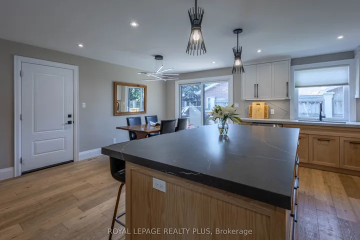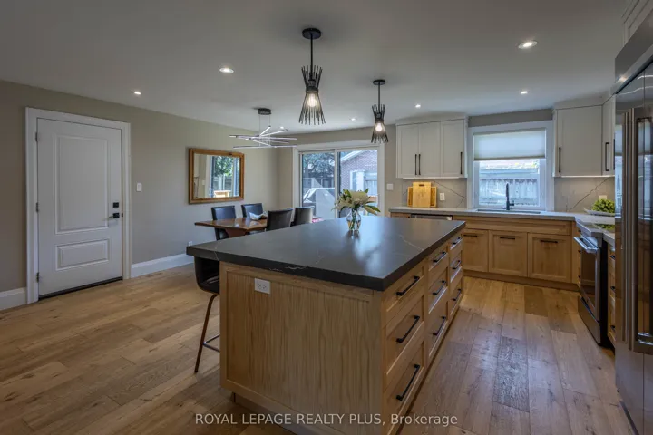 +"PublicRemarks": "Absolutely spectacular, totally renovated, state-of-the-art bungalow in Burlingtons highly sought-after La Salle neighbourhood. 3+1 Bedrooms. 3 bathrooms. Close to the Lake on a fabulous 75 x 100 lot in a family friendly community with great schools and all the necessary amenities nearby. Single garage with newer door and opener. Extra wide driveway for up to 6 car parking. Added EV plug in garage for electric car. Repointed front of house. Completely waterproofed outside foundation and added sump pump. Ring doorbell. Newer premium front door entry into a breathtaking, welcoming open concept main floor. The interior is finished to the highest standards with modern tasteful improvements and designer decor from tip to toe. All newer windows. Valor gas fireplace. Engineered hardwood floor throughout main level principal rooms. Gourmet kitchen, Quartz countertops, backsplash, and newer high-end stainless steel appliances (induction stove and built in fridge). Custom oak cabinetry, farmer sink w/cutting board and drying rack. Huge family sized kitchen island. Many other newer features and chattels of the home including over 60 pot lights, lights, baseboards, doors and fixtures. Three gorgeous upgraded bathrooms with smart toilet in main bathroom. Sliding back door walkout to newer deck. All electrical wiring replaced. Includes washer, dryer, washing tub, owned tankless water heater, heat pump, upgraded 200 amp electrical panel, all updated plumbing, natural gas line to bbq. Finished basement with separate access door to backyard. The basement is further highlighted with high end laminate flooring, kitchenette, huge rec room with family fun blackboard wall. There is a fourth bedroom in basement, plus there are 2 other rooms that offer many possible uses as either offices, or dens, or even as guest rooms. Newer Egress window well off basement br. There is nothing needed, just move right in. Its brilliantly finished, lovingly maintained, and it feels like brand new."