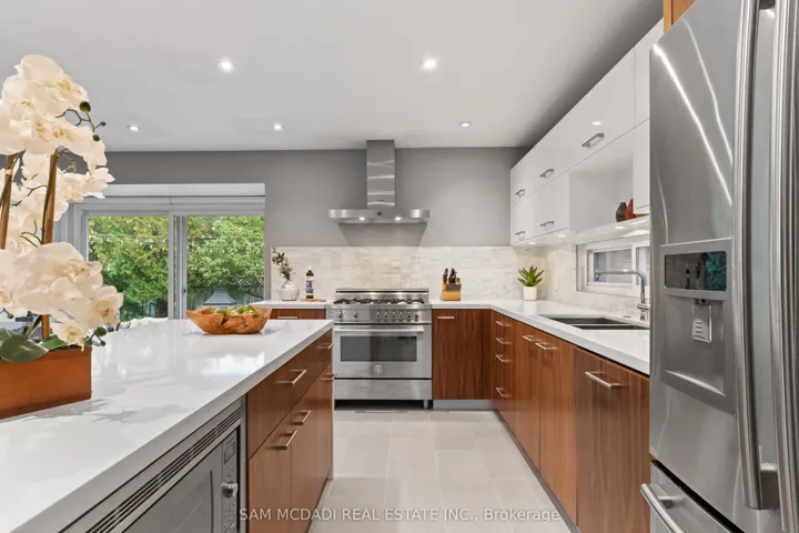 +"PublicRemarks": "An absolute showstopper. Fully Renovated, Energy-Efficient home in Prime Mississauga Location! Over $300,000 in upgrades in this stunning 4+1 bedroom side-split home on a premium 71x117 ft lot. Unique half-floor layout enhances openness and flow. Professionally renovated top-to-bottom with no expense spared: all joists on main floor doubled and levelled, new PEX plumbing throughout, durable asphalt roof with ice shield, ridge vents ,aluminum soffits, and drip edge. Brand new high-efficiency furnace + heat pump/AC (2024).Energy efficiency is unmatched: upgraded batt + attic insulation, full lower-level spray foam, 2 inch Styrofoam-stucco exterior, and 6mil vapor barrier. Enjoy tons of natural light from oversized custom windows with built-in sun shades, blackout blinds, and retractable screens lifetime warranty included! Designer 20x10 ft chef's kitchen with pro-style appliances incl. Bertazzoni 36 gas range, 8 foot quartz island with waterfall edge, and extra-deep counters. Spacious living areas with Acacia hardwood flooring and Nu Heat heated bathroom floors. Finished basement ideal for in-laws and extended family. Backyard oasis: south-facing, private, with mature trees, gorgeous lighting, and room for a pool. Oversized garage with 20A circuits for pro tools. Five-car parking. Custom walnut cabinetry, solid-core interior doors, smart home features (Ecobee thermostat, Wi-Fi light switches), and elegant sunken living room. Convenient side entrance from laundry room, offers easy access to outside and provides great potential for a secondary kitchen or in-law suite setup. Ideal for multi-generational living or future rental income. Located in a prestigious, park-filled neighbourhood near top-rated schools (2-min walk), UTM (5-min drive), Credit Valley Golf and Country Club, GO stations, and all amenities. A truly one-of-a-kind home offering exceptional comfort, craftsmanship, and style! Detailed list of upgrades has been attached to the listing."