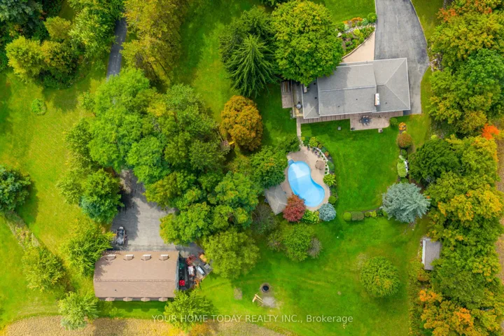 +"PublicRemarks": "The complete country package with room for the in-laws and potential to work from home! Breathtaking is the only way to describe this fabulous home and property! Situated on approx. 34 acres (16 workable) with attached 3-car garage, separate 3,840 sq. ft. workshop (1,920 sq. ft. shop, 1,920 sq. ft. loft), heated wood working area, separate driveway, large heated shed, heated in ground saltwater pool, cabana and all the privacy you could ever hope for. All this plus approx. 4500 sq. ft. of beautifully finished living space! A large, covered porch welcomes you into this immaculate custom-built home where you will find quality finishes, tasteful decor and attention to detail from top to bottom. The well-appointed main level offers a spacious living room with fireplace open to the dining room creating the perfect gathering space for family and friends. A gourmet kitchen with stylish shaker cabinetry, quartz counter, breakfast bar, SS appliances and incredible walk-in pantry will surely delight the cook in the home. The adjoining family room enjoys a toasty fireplace and walkout to the patio overlooking the beautiful grounds and separately fenced pool. An office, powder room, enviable laundry room and garage access complete the level. The upper level offers 4 spacious bedrooms, the primary with a walk-in closet and updated 3-pc ensuite. The 3 remaining bedrooms share a luxurious 4-pc bathroom. The finished lower level adds to the living space with an open concept layout offering a gorgeous kitchen with shaker style cabinetry, quartz counter, SS appliances and breakfast bar. The adjoining rec room enjoys another fireplace and walkout to a covered patio. A 5th bedroom, 3-pc bathroom, huge cold cellar and loads of storage space complete the package. And talk about location surrounded by the Bruce Trail for your hiking pleasure and just steps to Limehouse Conservation Area and the quaint Limehouse Public School with easy access to Acton and Georgetown for all your needs."