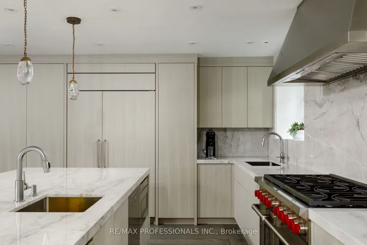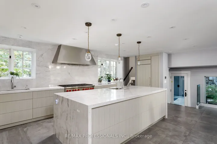 +"PublicRemarks": "The House that built the Kingsway. In a neighbourhood of stately homes, 43 The Kingsway stands apart. This is the first estate to be built in the Kingsway, located on the best and first lots in the Kingsway, selected for the most overall table land available on the Humber River ravine - 43 The Kingsway is the crown jewel of the neighbourhood. If you've ever driven through the neighbourhood, you already know this home - it's the one with the glass atrium with copper roof, the one that glows at night & is full of light during the day. Since construction, the home has been meticulously stewarded by its owners, & tastefully updated to blend modern sensibilities without losing the Kingsway feeling. From outside, you'll appreciate Jim Mosher's dramatic humber river stone landscaping, the elegant, & particularly Kingsway styling of the rear extension is seamless. Enter to the show stopping glass atrium, complete with heated floors and wrought iron spiral staircase. To your left, an oversized three car garage with ample storage. Up the spiral staircase, the guest or nanny suite is built to impress - vaulted ceilings, floor-to-cieling humber river ravine views. The main house is built for entertaining. The reimagined flow of the first floor features multiple formal living spaces, airy family room, elegant extended-family-sized dining room, & new chef's kitchen - overbuilt with the consummate entertainer in mind, with truly flawless marble work. The 2nd floor is built around the primary suite, featuring a sitting room to look out over the River, impressive walk-in closet, dual primary baths, & fireplace. The floor has three more bedrooms, all with abundant closet space & impressive views. The 3rd floor is adaptable - with large dormers overlooking the ravine, ample closet space & a four piece bathroom, this could be a secondary primary bedroom, a rec room with office, a playroom, or the alternate nanny suite.The lower level features rec room & gym, walkout to the rear lawns."