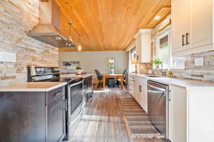 +"PublicRemarks": "Brimming w/ warmth and thoughtful updates, this multi-level home has been beautifully reimagined for modern family living. Nestled on a mature, tree-lined street in one of Orangeville's friendliest neighbourhoods, it's a place where comfort, style, and connection come together seamlessly. Inside, the open-concept main floor welcomes you w/ a sense of ease and belonging. A striking wood-clad ceiling and wide-plank floors set a warm, natural tone, while the light-filled living, dining, and kitchen areas flow together effortlessly. The kitchen is a true heart-of-the-home space, featuring quartz countertops, a large island perfect for morning chats or after-school snacks, and beautiful stone accents that bring rustic charm to its modern design. Sunlight pours through oversized windows, creating a bright, uplifting atmosphere that's ideal for both quiet moments and lively gatherings. Upstairs, 3 comfortable bedrooms with hardwood floors and generous windows offer restful retreats for every member of the family, all served by a 5 pc bath. The finished lower level expands the living space w/ a cozy sitting area or home office, a fourth bedroom, and an additional 3 pc bath, ideal for guests or family members craving a little more privacy. Down one more level, the finished basement offers a welcoming recreation room made for movie marathons, game nights, and relaxed family time. Step outside and feel the joy of having your own backyard retreat. The inground pool sparkles at the centre of it all, framed by a stone patio perfect for lounging or hosting summer barbecues. A pergola-covered sitting area invites long, lazy afternoons outdoors, while the cabana shed adds both convenient storage and a sheltered entertaining space, perfect for poolside snacks, laughter, and making lasting memories. With its inviting atmosphere, family-friendly layout, and backyard designed for connection and relaxation, this is a home where every day feels like a getaway."