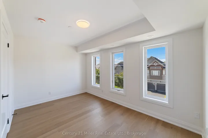 +"PublicRemarks": "Rarely offered modern and elegant end unit freehold townhouse with a stunning stone and brick façade, offering nearly 2,000 sq ft of above grade living space with a spacious and functional layout including living, dining, and family rooms, three large bedrooms, and convenient upper level laundry. This bright home features 9 ft smooth ceilings on the main floor, a beautiful white kitchen, and no carpet throughout. The large primary bedroom includes a walk in closet and a spacious ensuite with a glass shower. Enjoy an interlocked driveway extension with extra parking, a generous 35 ft wide rear, and a large private backyard with no rear neighbours, perfect for relaxing and entertaining. The unspoiled basement offers endless potential. Ideally located close to parks, schools, shopping, the GO Station, Hwy 404, and just steps to the brand new state of the art Community Health and Active Living Plaza, adding exceptional convenience and long term value to the neighbourhood. A must see!"