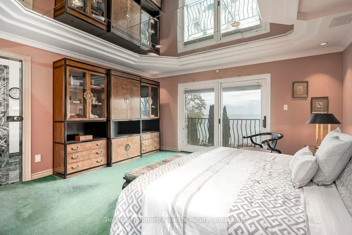 +"PublicRemarks": "Crafted as the personal residence of a renowned designer, this 5+1 bedroom, 10,000+ sq.ft. waterfront estate is a rare offering in one of Bronte's most coveted settings. While neighbouring homes were also designed by him, none compare to the scale, craftsmanship, and artistry dedicated to this residence-his own masterpiece.Expansive windows and soaring ceilings flood the home with natural light, framing breathtaking lake views on every level. Multiple balconies and terraces offer front-row views of sunrises, sunsets, and moonlit water-creating a seamless connection to nature from morning to night.Thoughtfully designed for both family living and elegant entertaining, the main level features grand principal rooms, multiple gas fireplaces, formal and informal living spaces, and a gourmet kitchen with walkout to the lakeside terrace. Each level offers outdoor retreats - private balconies off bedrooms, and expansive terraces perfect for gatherings.The upper level includes generously sized bedrooms, including a luxurious primary suite with private balcony, spa-like ensuite, and unobstructed views of the lake. A full lower level adds an additional bedroom, recreation spaces, gym, and walkout access.Set on a quiet street with a strong sense of community, this home offers a rare blend of privacy and connection. The saltwater pool, manicured grounds, and lakeside setting make every day feel like a peaceful escape.Minutes to Bronte Harbour, boutique shops, trails, parks, and top-rated schools-this residence is more than a home; it is a lifestyle on the water."