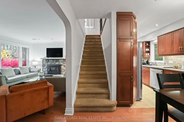 +"PublicRemarks": "Beautifully updated detached home in the heart of Port Credit. This spacious 3+1 bedroom, 3-bath home features an open-concept main floor with hardwood floors, large windows, and a cozy fireplace. The modern kitchen offers stainless steel appliances, pot lights, and a walkout to a deck overlooking a fenced backyard. The primary bedroom includes a 4-piece ensuite and walk-in closet. Finished lower level with separate entrance, recreation room with gas fireplace, and additional bedroom. Detached 2-car garage with private driveway and parking for up to 8 cars. Close to schools, parks, transit, and Lake Ontario."