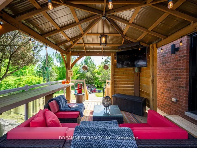 +"PublicRemarks": "Nestled on a lush 1.67 acre lot in scenic Campbellville, this fully renovated 5 bedroom, 6.5 Bathroom bungalow perfectly blends contemporary farmhouse charm with luxurious resort-style living. Meticulously designed, this turnkey estate delivers an exceptional family estate and entertainer's paradise. Boasting over 6000 sq. ft. of finished living space, the gourmet chef's kitchen showcase top-of-the-line Thermador appliances, a Bosch built-in espresso machine, Miele double ovens, dual dishwashers, refined under-cabinet lighting - all seamlessly connected to a bright four-season sunroom, perfect for year-round enjoyment. The expansive primary suite provides a private sancturay featuring ensuite with dual rain shower heads with premium finishes. Main floor includes a dedicated spa wing with heated inground salt-water pool, hot-tub, sauna and fitness area with full bath, delivering an exclusive at-home wellness retreat. A private in-law suite offering a separate living room, bedroom with ensuite bath, and walk-in closet, perfect for multigenerational living or guest accommodation. The fully finished lower level includes a custom home theatre, bespoke live-edge bar, additional full bathroom, cedar-lined storage room, and secondary laundry - enhanced by designer millwork, barn doors, skylights, and upscale finishes throughout. Smart home technology is integrated via the Control4 system, offering complete automation and control of indoor and outdoor lighting as well as outdoor audio system, all accessible through a user-friendly app for seamless convenience. The professionally landscaped backyard is a true entertainer's dream, featuring a full outdoor kitchen, covered gazebo lounge, and cozy firepit area, surrounded by mature trees for ultimate privacy. Additional highlights include a detached barn, expansive manicured green spaces and a spacious three-car garage."
