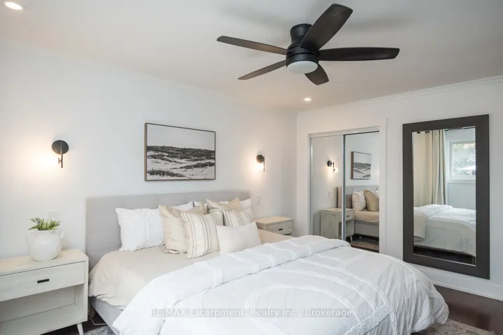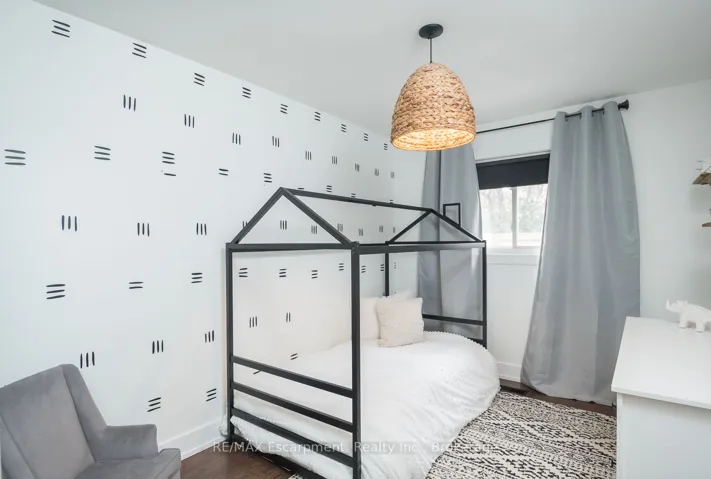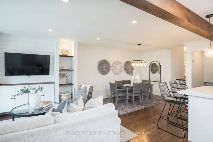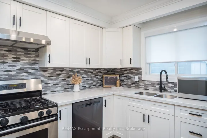 +"PublicRemarks": "Beautifully renovated, this four-level back split offers a functional, family-friendly layout with stylish updates throughout. The main level features an open concept living and dining area with smooth ceilings, pot lights, crown molding, and a shiplap feature wall with custom built-ins. The upgraded kitchen is complete with quartz countertops, white shaker cabinetry, stainless steel appliances. A large centre island provides breakfast bar seating for three and a convenient central vacuum kick sweep, while the coffee bar and additional pantry add both storage and function. Upstairs are three bedrooms and a fully renovated five-piece bathroom with a double sink vanity, stylish wall and floor tile, and updated hardware and fixtures. A custom walk-in hallway closet offers smart extra storage, and the bright primary bedroom features updated closet doors and abundant natural light. The finished lower level offers a spacious recreation area with large windows with the addition of a custom three-piece bathroom, showcasing a checkerboard tile floor, glass shower and stylish vanity and hardware for a fresh, modern look. The lowest level provides additional storage and a functional laundry area. Set on a quiet street in a family-oriented Burlington neighbourhood, with a lush, private and fully fenced backyard, this move-in-ready home offers exceptional value and appeal for today's buyer."