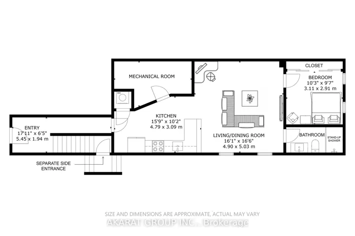+"PublicRemarks": "Furnished legal 1-bedroom, 1-bathroom basement apartment with a separate side entrance. Short-Term avaiable. Large windows in the living and dining area provide natural light, and pot lights brighten the entire living space and kitchen. The unit includes a stainless steel fridge, plenty of cabinet space, and a counter for eating. The bedroom has a spacious closet, and the upgraded washroom features a tiled glass shower with modern finishes. There is a private laundry closet inside the unit. High-speed internet is included. Utensils, dishes, and small kitchen items are not included. Living area is around 700 SQFT. Located in a quiet, family-friendly neighbourhood close to parks, schools, shopping, and transit. Ideal for a single person or couple looking for a comfortable, move-in-ready home. Tenant pays 30% of utility bills."