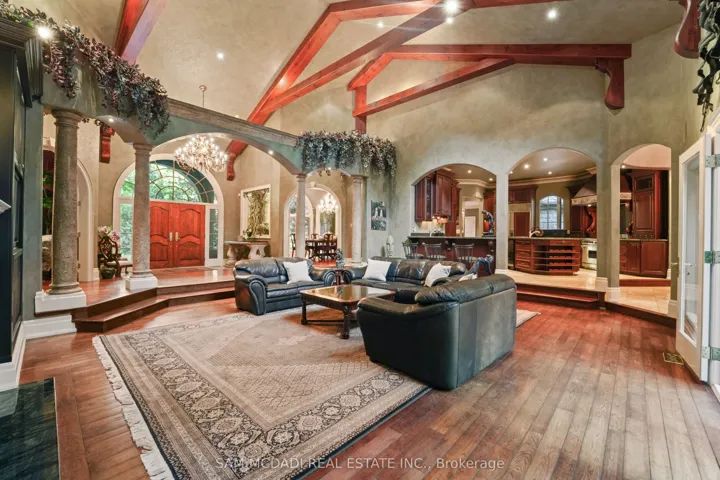 +"PublicRemarks": "Welcome to an extraordinary luxury residence set within the prestigious enclave of Whispering Pines-a private, tree-lined haven of country estates tucked away on a quiet cul-de-sac. This custom-built estate offers the perfect balance of timeless craftsmanship, refined elegance, and modern comfort. Resting on a private 3-acre lot, the property is beautifully landscaped and features a serene pond with fountain, creating a truly picturesque setting. At the rear, a newly renovated pool, hot tub, and expansive patio overlook the lush gardens, providing an exceptional space for outdoor living and entertaining. Spanning nearly 11,000 sq. ft. of finished living space, the home was designed with scale and sophistication in mind. Inside, grand principal rooms offer the ideal setting for both everyday family living and hosting large gatherings. The residence features four spacious bedrooms, a wine cellar and tasting room, a four-car garage, and thoughtful architectural details throughout-delivering a rare blend of luxury and functionality. Ideally located, the property offers quick access to Highway 401 and is just a short drive to Guelph, Milton, Burlington, and Toronto Pearson International Airport, providing outstanding convenience without compromising the tranquility of its secluded setting. Every detail speaks to prestige and privacy, making this one of the most desirable offerings in the region."