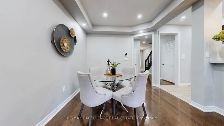 +"PublicRemarks": ""Freshly Painted, Whole House Full Of Pot Lights" Beautifully upgraded 3-bedroom, 3-washroom freehold townhome in the desirable Southfields Village community. Designed for modern living, the open-concept kitchen seamlessly connects to the dining, breakfast, and family areas, with a walkout to the backyard ideal for family gatherings and summer BBQs! The spacious primary suite features a large walk-in closet and private en-suite bath. This home offers thoughtful updates, including an extended interlock driveway for extra parking and convenience. Perfectly situated close to walking trails, top-rated schools, public transit, and easy highway access. Just minutes from Dougal Plaza, offering Subway, Indian restaurants, grocery stores, bakery, and child care services everything you need at your doorstep! Elementary school and bus stop are just a few steps away, with parks, plazas, and other amenities nearby."