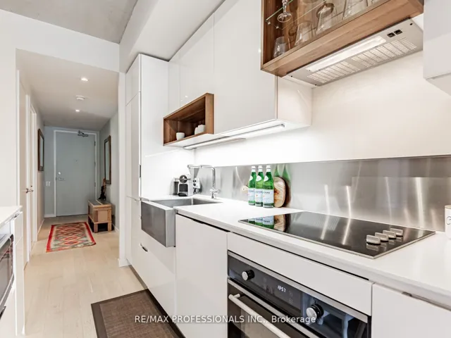 +"PublicRemarks": "Live in one of Toronto's most sought-after neighbourhoods, in a boutique building designed by renowned neo-modern architect Peter Clewes. This intimate and stylish residence offers the perfect balance of design and function. This thoughtfully planned 1+den suite with two full baths features a versatile den that can easily serve as a second bedroom or home office. Soaring nine-foot exposed concrete ceilings, floor-to-ceiling black-framed windows that flood the unit in sunlight, and bleached oak floors fill the space with natural light and give it a modern edge. The sleek kitchen is equipped with built-in appliances, quartz counters, a stainless steel backsplash, oversized sink, and crisp white cabinetry. A custom island with quartz counters extends into a walnut dining table, creating a seamless space for both cooking and entertaining. The primary bedroom offers pot lighting, floor-to-ceiling windows, double closets, and a spa-like three-piece ensuite with a frameless glass walk-in shower. A private covered balcony, integrated front closet, ensuite storage, and in-suite laundry complete the home, along with one underground parking space. Residents enjoy exceptional building amenities including a gym, party room, concierge, BBQ area, bike storage, and visitor parking. Situated in the heart of Roncesvalles, one of Toronto's most vibrant communities, this home is surrounded by cafes, restaurants, markets, shops, and parks including an off-leash dog park! With quick TTC access by streetcar or subway, downtown is only minutes away. Stylish, functional, and ideally located, this condo offers the best of both home and neighbourhood."
