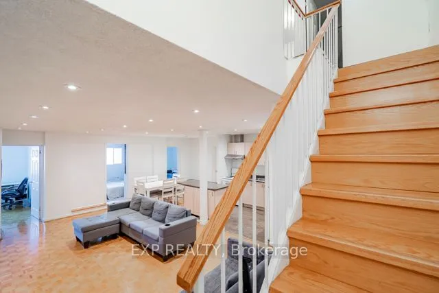 +"PublicRemarks": "Spacious lower stacked end-unit corner home featuring an open-concept layout with a private walk-out balcony, dining area, modern kitchen, main floor powder room, and a versatile nook or tech station, perfect for homework or working from home. Upstairs, you will find 2 large bedrooms and 2 full bathrooms, including a primary suite with its own ensuite bath. Both bedrooms have oversized windows that fill the space with natural light. Conveniently located just minutes from shopping, restaurants, and Highway 416."