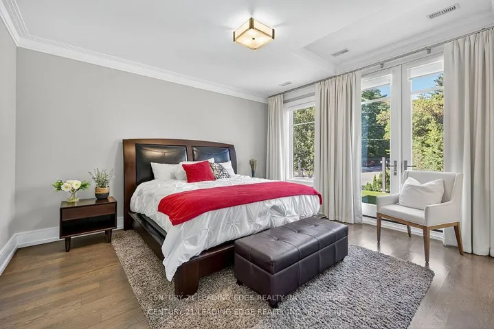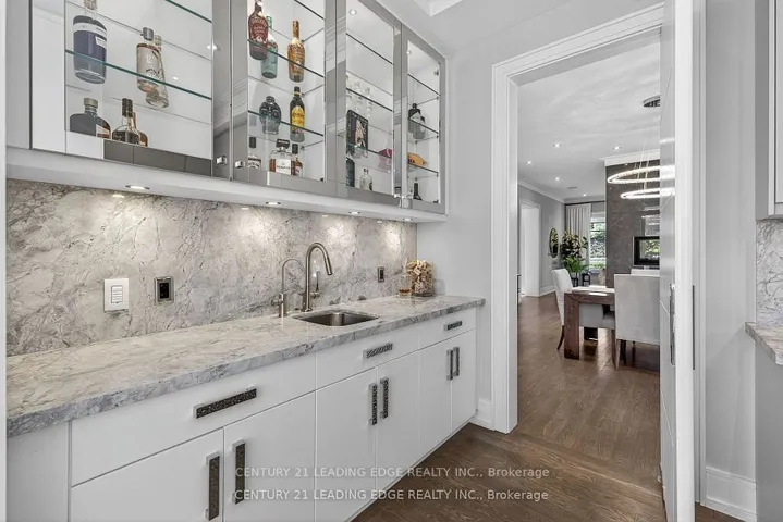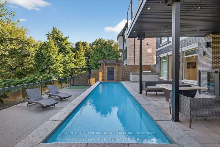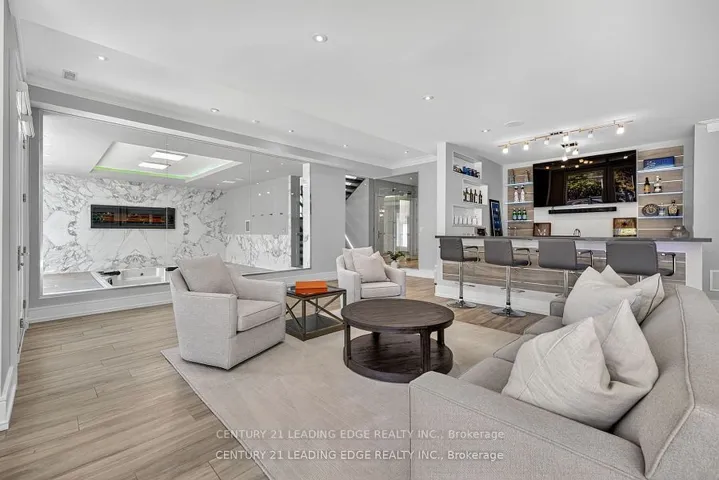 +"PublicRemarks": "Must See. Showcase home boasting nearly 8,000 sf of luxury living space. Classic exterior structure w traditional brick and stone finish. Modern interior w stunning foyer/entrance with soaring ceilings. Multiple skylights. Imported materials including marble, hardwoods, plaster molding and more. Extra high ceilings and oversized windows thru-out creating bright and spacious living space. Stunning custom kitchen w built-in professional grade appliances, centre island with seating, huge pantry, walk-thru to dining space. Two way fireplace feature distinguishes spacious living and dining areas. Family rm w built-in shelving, fireplace, overlooks pool and private yard. Ultra lavish primary suite w separate envious walk-in his and her closets and luxurious 7 piece bath w stand alone tub, separate glass shower/steam, heated flrs. Each bedroom w own ensuite and walk-in closet. Multiple double door Juliette balconies. Two laundry rm (2nd and bsmt) Elevator servicing all 3 levels. Radiant heated floors in several areas in the home including garage and driveway. The finished lower level is designed for entertainment and relaxation. Rec room with fantastic bar w seating, showcase climate control wine room, home gym, sep sauna. A nanny suite w ensuite and w/o adds flexibility. Distinctive indoor swim spa with glass walls providing open appearance overlooks outdoor cascade waterfall featured inground pool. Outdoor two tiered entertainment patio complete with BBQ grill station, covered seating overlooking pool and yard. This residence is fitted with Control 4 automation with many conveniences incl water purifier/softener system, electronic privacy gate for the ultimate in peace-of-mind. Fully landscaped, spacious double car garage and driveway can accommodate 10 cars. Ravine property backs onto James Garden and o/l river and golf course. 10 Min to Airport, 20 min to downtown. CN Tower view. Situated close to multiple private Golf Clubs, renowned Public/Private schools."