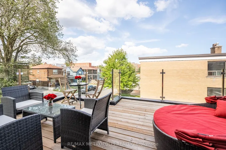 +"PublicRemarks": "Welcome to this 3-storey corner Toronto home that's fully furnished with an up-to-date decor & an assortment of luxury features. All utilities (heat, hydro, water) are included. The open-concept living space is a perfect place to relax after a long day or host a family gathering. The 65-inch Samsung The Frame TV provides over 10,000+ channels & movies On Demand through the included Android Box & IPTV service which is perfect for those that enjoy movies & shows. Bell Fibe high speed internet is included; therefore, you can stream movies, watch videos & work from home with ease. The private driveway consists of 2 parking spaces & is also included in the rent. 1 EV charger spot is also available for use if you have an electric car. Kitchen is equipped with stainless steel appliances, small appliances, cookware, & cutlery. The large centre island is ideal size for the breakfast area & cooking your favourite dishes. The dining area has a large table - perfect for family & friends gatherings. The powder room is conveniently situated next to the foyer area & the dining room. The upper levels of the home consists of 3 spacious bedrooms, lots of closet space & additional full washrooms. All bedrooms are tastefully furnished with consistent style. The primary bedroom, located on the 2nd level, offers a his/hers closet, a 4 piece ensuite & a walkout to a large patio with outside furniture. Coffee lovers will absolutely enjoy the second-floor patio where they can savor their morning fill, while the main-level outdoor space provides a great platform for entertaining, just sitting down & BBQing with friends! Additionally the home features hardwood floorling throughout, the ensuite washer & dryer for added convenience, & office space in the 2nd bedroom. Easy access to TTC bus routes & future Eglinton Crosstown LRT, connecting you to the rest of the city with ease. Close to parks, schools, shopping, dining, & community center. Short-term option is available."