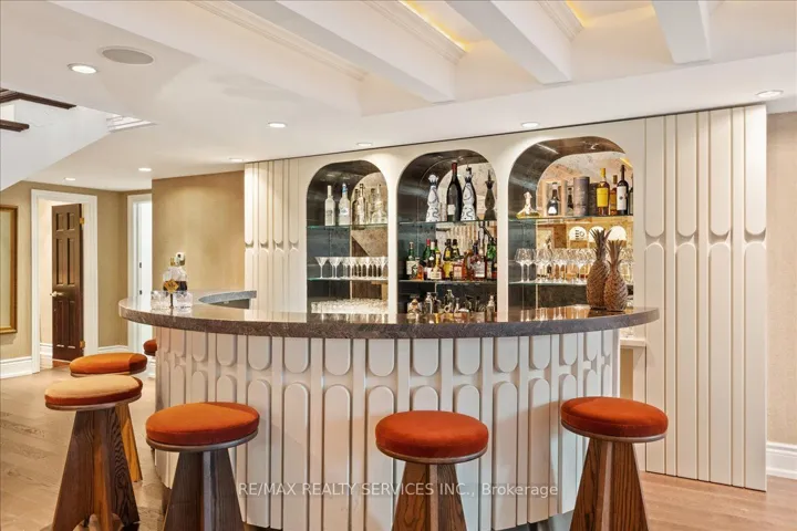 +"PublicRemarks": "Experience the pinnacle of privacy and prestige in this 14,000 sq.ft. limestone clad estate, situated on a wooded 1-acre lot directly across from Heartlake Conservation Area. With a replacement value of $12.8M, this masterpiece underwent a 4 year rebuild that radiates luxury, and was completed in 2008. Featuring a 4-car garage with wash bay and a chef's kitchen with double islands, galley kitchen, and servery. The residence hosts 5 ensuite bedrooms, including a jaw-dropping 3,300 sq.ft. primary retreat with a private library, wet bar, Onyx-clad bath, walk-out patio, and a 1,500 sq.ft. boutique-style closet lined with custom millwork. The walk-out lower level redefines entertainment, offering a theatre, gym, nanny suite, playroom, and bar. The absolute showstopper is the indoor pool facility with a jacuzzi, changeroom with shower, and oversized glass doors that retract to create a seamless indoor/outdoor oasis unlike anything you've seen in the GTA. Outside, enjoy a stone courtyard and putting green surrounded by tranquil nature. Located near top-tier estates and Hwy 410, this home truly does have it all."