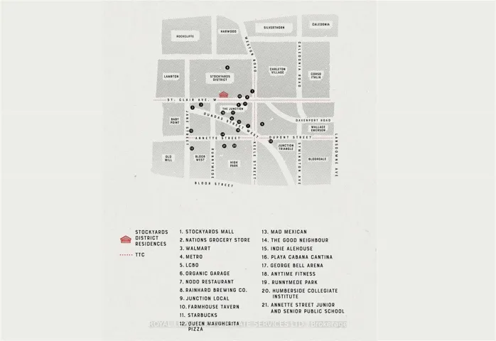 +"PublicRemarks": "Brand New Boutique Condo, Very Functional Large 1 Bedroom + Den Is 523 Sqft. North Facing Suite W/ Tons Of Natural Light. 9' Ceiling. Walking Distance To Walmart, Stockyard Mall, Canadian Tire, Restaurants, Cafes, Parks & More. Minutes From TTC/Streetcar. Visitor Parking Available. Beautiful amenities, brand new gym, full time concierge."