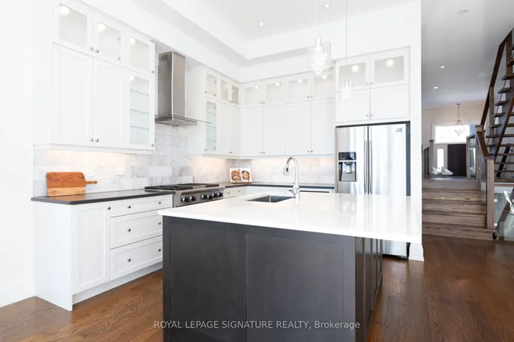 +"PublicRemarks": "Welcome To This Stunning Two-Storey Detached Home In The Highly Sought-After Etobicoke-Mimico Neighbourhood. This Impeccably Built Residence Offers Sophisticated Living Across Every Level. Step Inside To Discover An Expansive Living Room And Dining Area, Perfect For Both Entertaining And Everyday Living. The Gourmet Kitchen Features 12 Ft Ceiling, Lighted Cabinetry, Premium Quartz Countertops, A Generous Center Island, And Stainless Steel Appliances. The Family Room Features 12 Ft Ceiling, A Cozy Fireplace And Walk-Out To A Deck And Beautifully Landscaped Backyard. The Home Boasts 3 Generously Sized Bedrooms, Each With 9-Foot Tray Ceilings. Natural Floods The Upper Floor Through Multiple Skylights, While Modern Glass Railings Add A Contemporary Touch Throughout. Light With 4 Bathrooms Total (Including 3 Full Bathrooms And A Convenient Main-Floor Powder Room),This Home Is Designed For Comfort And Functionality. The 9-Foot Basement Ceilings Create A Bright, Inviting Lower Level With Its Own Walk-Up Access To The Backyard. Additional Highlights Include Hardwood, Marble, and Porcelain Flooring, Abundant Storage, Integrated Security Camera System, And A Built-In Garage For Added Convenience And Peace Of Mind. This Is A Rare Opportunity To Live In A Meticulously Cared-For Home In One Of Toronto's Most Desirable Waterfront Communities."
