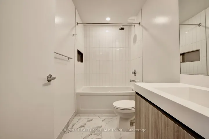 +"PublicRemarks": "Gorgeous brand new Mount Pleasant Village one bedroom apartment plus den located at the sought after MPV2 (East Tower) built by "Daniels". Fantastic layout with 9 foot ceilings, Led lighting, smooth ceilings, laminate plank floors throughout, and a walkout to a wall to wall 18 foot wide balcony (92 square feet) with an unobstructed northwest view. Property features one parking, one locker, and en-suite laundry with front load LG washer and dryer. Modern kitchen with quartz counter tops, soft closing cabinetry/drawers, ceramic backsplash, under cabinet lighting, under mount sink, track accent lighting, centre island with storage space, paneled GE dishwasher, and stainless steel appliances. Open concept living/dining room area with walk-out to balcony. Primary bedroom retreat with large double mirrored closet with double rack hanging. Separate private den ideal for home office, main 4 piece bathroom offering vanity with soft closing drawers, soaker tub, built-in shower product shelf and upgraded shower pot light. Premium building facilities with fitness centre, activity zone, impressive lobby area with 24 hour concierge, co-working space, kid's club, games lounge, party room, outdoor barbeque, eco-conscious building featuring energy-efficient heat pump HVAC and ERV system. Conveniently located just minutes to Mount Pleasant GO Station, shopping, parks, trails, schools, highways, and public transit."