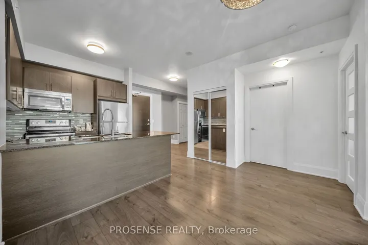 +"PublicRemarks": "Enjoy breathtaking, unobstructed east-facing views from this stunning 1 Bedroom + Den condo with two owned underground parking spaces, ideally situated on the 9th floor with a spacious balcony overlooking the lush green ravine of the Claireville Conservation Area and the Toronto skyline beyond. One of Brampton's most desirable outlooks, this home offers a unique blend of peaceful natural surroundings and expansive city views.The bright, open-concept interior features 9-foot ceilings and floor-to-ceiling windows that flood the space with natural light. Durable laminate flooring and sleek tile finishes complement the modern kitchen, complete with granite countertops, stainless steel Frigidaire appliances, under-cabinet lighting, and a functional breakfast bar. The versatile den is ideal for a home office or guest area, while the generous primary bedroom includes mirrored closets and large windows with serene views.The suite also includes a locker and in-suite laundry for added convenience. Residents of The Clairington enjoy an array of well-maintained amenities including a fully equipped fitness centre, party room, guest suite, visitor parking, and 24/7 concierge service.Surrounded by over 343 hectares of protected parkland, residents have direct access to scenic trails for hiking, cycling, and outdoor recreation. Conveniently located with quick access to Highways 407, 427, and 410, Bramalea GO Station, shopping plazas, and Chinguacousy Park, this home offers an ideal balance of connectivity and tranquility. A fantastic opportunity for first-time buyers, downsizers, or investors seeking location, lifestyle, and long-term value."