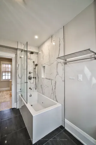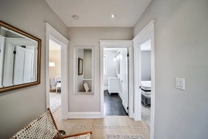 +"PublicRemarks": "Exceptional Century Residence - Discover an unparalleled opportunity at 128 Chisholm-a fully renovated, beautifully furnished 3-bedroom, 3-bath detached century home in Oakville's coveted lakeside enclave. Blending heritage character with sophisticated contemporary design, this residence offers an elevated lifestyle moments from Lake Ontario's waterfront and vibrant downtown. Positioned between Lakeshore Road and Rebecca Street, enjoy a 5-minute stroll to lakefront parks, boutique shopping, acclaimed dining in historic Downtown Oakville and upscale Kerr Village. Proximity includes exclusive canoe/yacht clubs, Central Library, indoor pool, and Oakville Centre for the Performing Arts for recreation, culture, and entertainment. Inside, natural light floods through generous windows across a wide lot, creating an airy atmosphere. The 2023 renovation features 9-foot ceilings, gleaming hardwood floors, and custom millwork. The elegant living room centers on a corner gas fireplace with mounted TV, flowing to the dining area for gatherings. The main-floor primary suite offers luxury with expansive windows, electric fireplace, oversized mounted TV, walkthrough dressing room with custom cabinetry, and a spa-like 4-piece ensuite featuring glass shower with multiple heads and dual vanities. The gourmet kitchen boasts a moveable center island, premium gas stove, range hood, ample workspace, and rear deck access. A 2-piece powder room completes the main level. Upstairs, two bedrooms flank a foyer and share a 4-piece bath; the rear includes an electric fireplace and mounted TV. The lower level provides laundry, storage, workshop, and utility rooms. Outdoors, a private fenced yard features a wood deck and built-in gas BBQ for al fresco dining. Parking fits 5+ vehicles plus garage spot. Lawn maintenance (grass cutting, leaf collection) is included for low-maintenance living. Offered furnished for turnkey elegance; vacant lease available. Secure this waterfront gem today."