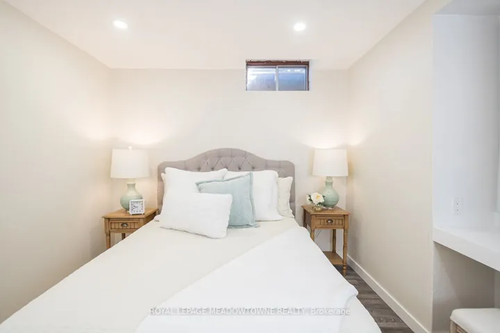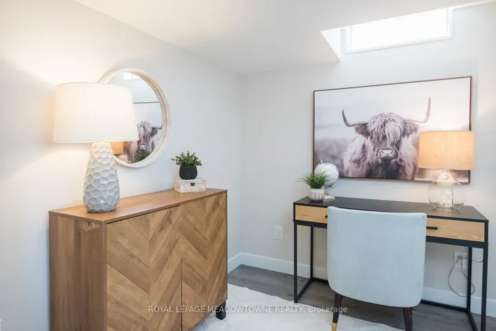 +"PublicRemarks": "Welcome to this beautifully finished ground/lower-level unit in a detached backsplit home, offering a smart layout, exceptional natural light, and a rare fully fenced backyard with no direct rear neighbours, backing onto a school. The main living space is located at grade and features a bright living room with walk-out to the yard, along with a renovated kitchen offering a second garden door entry & a spacious 4pc bathroom. The layout is functional, airy, and designed for easy everyday living. The lower level includes three bedrooms plus a separate den, ideal for a home office, gym, or guest space. This level is enhanced by extra-large, code-compliant windows, bringing in excellent natural light and creating a bright, comfortable living environment. In-suite laundry complete the space. Parking includes two private driveway spaces with shared access to the garage for storage. The backyard is fully fenced and perfect for pet owners. Utilities are shared and very reasonable. Located in a quiet, mature neighbourhood with easy access to parks, trails, schools, shopping, and highways. The upper unit is occupied by a respectful executive couple, making this home best suited to a professional individual or couple seeking a calm, well-maintained residence. Pet-friendly."
