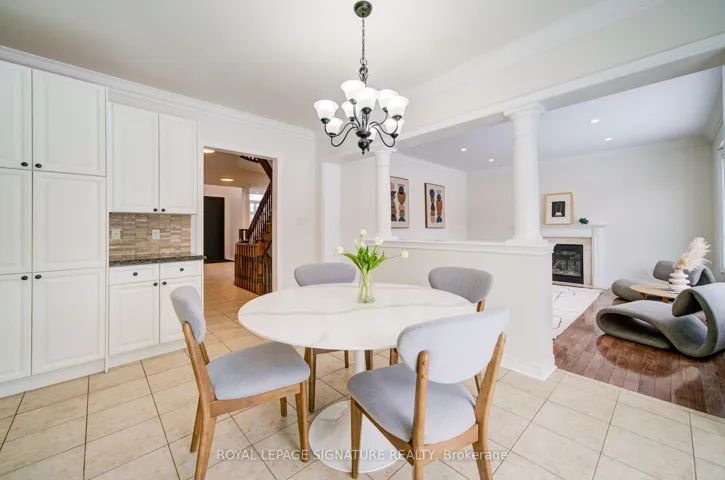 +"PublicRemarks": "Welcome to Oakville's prestigious Joshua Creek community, where convenience, luxury, and top-rated schools come together. This stunning Ballantry-built home sits on a premium deep lot with approximately 60' width across the rear, offering exceptional privacy and a professionally landscaped backyard with cobblestone-style patio, towering 28' Blue Spruce trees, maple, ornamental pear trees, and large cedars. Approximately 3,540 sq. ft. of luxurious living space features an upgraded fiberglass front entry door, hardwood flooring throughout the home, 9' main floor ceilings, crown mouldings, and a curved oak staircase. The main floor features a private office, a sunken formal living room with tapered columns, crown mouldings, and pot lights, and an elegant dining room with coffered ceiling and hardwood floors. The extensively upgraded and modified kitchen boasts maple cabinetry, extended-height upper cabinets, granite countertops, travertine backsplash, stainless steel appliances, a breakfast bar, and a walk-out to the breakfast area. The open-concept family room, anchored by a gas fireplace, completes this level, providing a perfect space for family gatherings and entertaining. The second floor features a spacious primary suite with a spa-inspired ensuite, including a luxurious soaker tub and a large walk-in closet. Three additional bedrooms include one with a private ensuite, providing comfort and convenience for family or guests. An exceptional home offering outstanding location, privacy and quality craftsmanship."