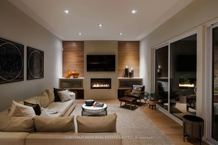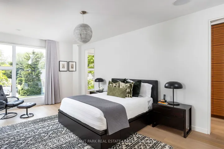 +"PublicRemarks": "Discover the essence of timelessly designed contemporary living at 2121 Harvest Dr: a marvel that blends sophistication & modern comfort, nestled on a quiet street within South Mississauga's coveted Applewood Acres. This luxurious 2-storey, 4+1-bed, 5-bath contemporary, sun-drenched home, custom-built in 2016, features just about 5,000 sq ft of total indoor living space on 3 levels & beautifully designed landscaped exteriors with a covered rear deck. It utilizes its remarkable scale to balance family life with space & features for unparalleled entertainment. Every inch of this spacious home is usable for quiet retreat & leisure while merging quality workmanship with clever design - the home's main level features soaring 10-ft ceilings, floor-to-ceiling windows that flood the space with natural light, white oak hardwood floors, solid wood doors, dramatic fireplaces & premium custom built-in walnut finishes throughout. The home's 2nd level features 4 bedrooms & 3 serene, spa-inspired bathrooms. The primary bedroom features a dramatic double-sided gas fireplace, creating a calm, focused space in which to start or end the day. The primary also features a 5-piece ensuite with double sinks & quartz vanities, a standalone soaker tub, & an oversized glass walk-in shower. The primary has the perfect walk-in wardrobe room with floor-to-ceiling, wall-to-wall, his-and-hers, custom walnut cabinetry. Retreat downstairs to the lower level, featuring wide windows for natural light, in-floor heating & white oak hardwood flooring. The lower level includes a spacious media room with custom-built-in walnut cabinetry, built-in speakers, & a designer gas fireplace. Also included is a well-proportioned bedroom with an adjacent 3-piece bathroom. Another unique feature is the sound-treated music studio. The glass-walled gym provides an ideal backdrop in which to be invigorated. After a workout or at the end of a busy day, unwind by the adjacent wet bar with family & friends."