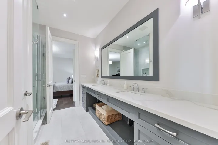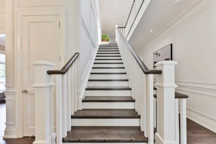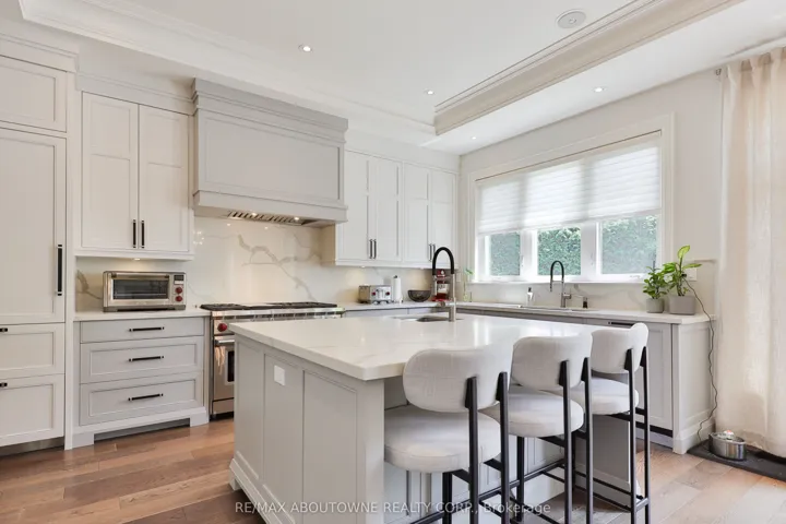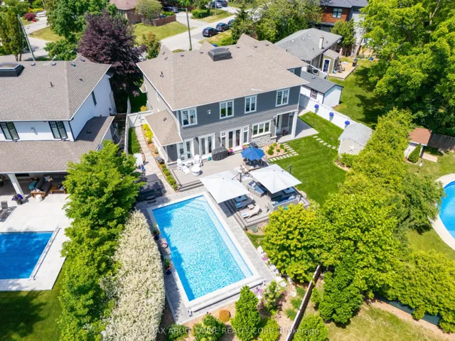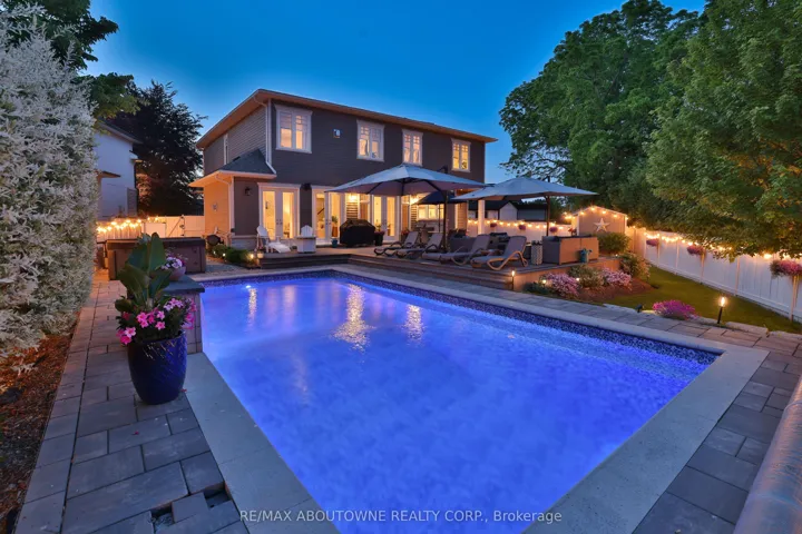 +"PublicRemarks": "This custom-built residence combines timeless architecture, magazine-worthy interiors, and a resort-style backyard with over 6,100 sq. ft. of finished living space. Set on one of the largest pie-shaped lots in the neighbourhood (over 45% larger than average) and just 3km to Appleby College, it offers a rare sense of scale and privacy. Southwest-facing gardens showcase a heated saltwater pool, tiered lounging areas, ambient lighting, and mature hedging. Inside, 10' ceilings, wide-plank hardwood, and bespoke millwork create quiet sophistication. The open-concept kitchen and family room with gas fireplace and French doors connect seamlessly to the gardens. A formal living room, elegant dining area, and private office complete the main floor. Upstairs, the primary suite rivals a luxury hotel with spa-inspired ensuite and dressing room, complemented by 3 bedrooms and laundry. The finished lower level adds a rec room with wet bar, gym, sauna, bedroom, and bathroom, ideal for teens, guests, or multigenerational families."