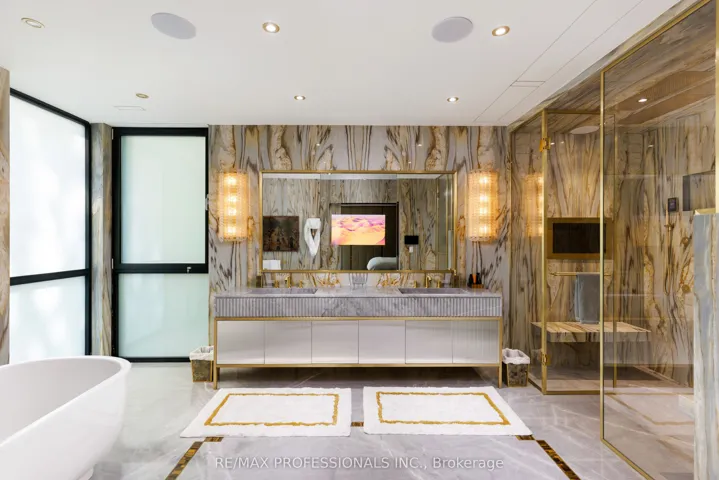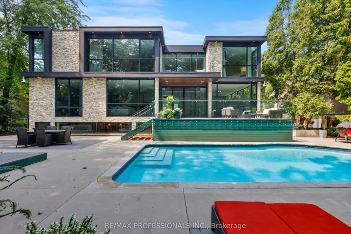 +"PublicRemarks": "Spectacular Custom home on Lambton Wood Ravine in prestigious Edenbridge Humber Valley. Idyllic private setting with secluded oasis complete with pool and east facing garden backing onto the wooded ravine. Enter inside a masterpiece of custom stonework throughout with floor to ceiling marble and endless upgrades and luxury appointments. 7000+ square feet of living space offers residents top of the line Gaggenau appliances and furnishings that overlook the backyard living and dining areas. The second floor offers 4 fully furnished bedrooms each with private ensuite baths. The primary bedroom is amongst the finest with ravine views and built in TVs and a 5 piece ensuite and walk in closets like no other. Lower level offers a full bar & temperature controlled wine cellar with sprawling lower living space complete with professional gym & spa/cold plunge & sauna. Not to be missed, the garage includes a two car lift. Truly a lifestyle experience and unequivocally the finest in finishes throughout nestled on one of the quietest streets in the area. Steps to Humber town plaza, Bloor, and close to all major highways. Short commute downtown & top school district."