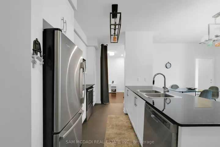 +"PublicRemarks": "Welcome home to elevated urban living in the heart of Mississauga's City Centre. This beautifully upgraded 2+1 bedroom, 2-bath 1045sqf condo at Parkside Village features soaring 10-ft ceilings, hardwood flooring, and sleek stainless steel appliances. The oversized den offers exceptional versatility and can easily be used as a third bedroom, home office, or guest space. Thoughtful upgrades include modern pot lighting in the living, dining, and den areas, updated light fixtures, and fresh paint in key living spaces, creating a bright and contemporary atmosphere.Residents enjoy an impressive lineup of amenities including a fully equipped fitness centre, indoor pool, sauna, party and media rooms, business centre, guest suites, visitor parking, and 24-hour concierge service. Perfectly positioned steps from Square One, Celebration Square, transit, the Hazel Mc Callion Library, Sheridan College, and minutes to Hwy 403, this home delivers unmatched convenience and lifestyle.An exceptional opportunity to own a stylish, move-in-ready residence in one of Mississauga's most sought-after communities - don't miss it."